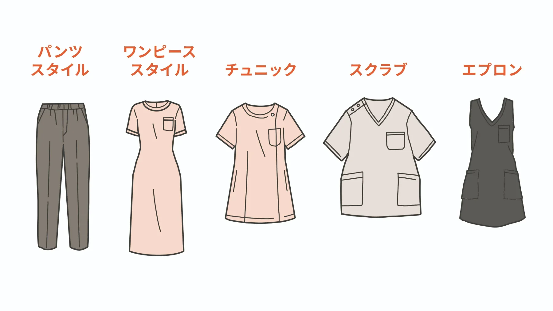 セラピストの服装にはさまざまなスタイルがあります。それぞれ、動きやすさや清潔感、サロンの雰囲気に合わせて選ぶことが重要です。ここでは、以下の5つの人気スタイルと、その特徴について詳しく解説します。